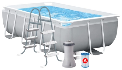 Каркас бассейна произведен из оцинкованных прочных труб, которые защищены от ржавчины и способны выдерживать высокие нагрузки. Днище бассейна оснащено удобным сливным клапаном, к которому можно подключить шланг для слива воды в нужном месте. Данная модель бассейна оснащена фильтр-насосом для циркуляционной очистки воды, производительностью 3785 литров в час, картридж типа A.