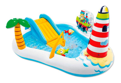 горка, фонтан, надувная удочка, две рыбки и 6 шариков