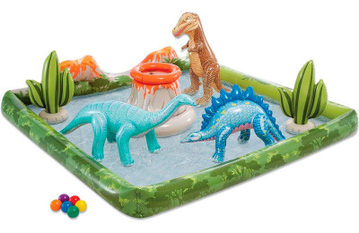 фонтан, 3 надувных динозавра, 2 кактуса, вулкан и шарики