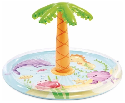 горка, фонтан-душ, динозавр, кольцо, пальма и 3 мячика